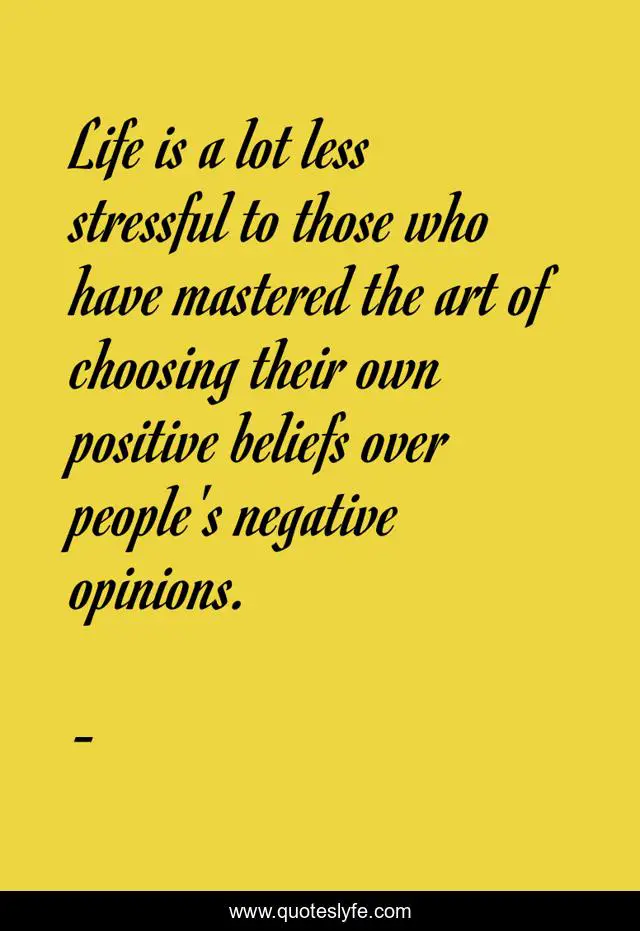 Life is a lot less stressful to those who have mastered the art of choosing their own positive beliefs over people's negative opinions.