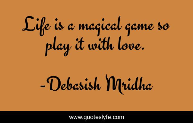 This page presents the quote "Life is a magical game so play it with love.". Author of this quote is Debasish Mridha. This quote is about life, life-is-magical, philosophy, debasish-mridha, quotes, play-it-with-love, debasish-mridha-md, inspirational, enthusiasm,.