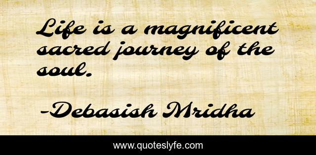 This page presents the quote "Life is a magnificent sacred journey of the soul.". Author of this quote is Debasish Mridha. This quote is about life, philosophy, sacred-journey, journey-of-the-soul, debasish-mridha, quotes, debasish-mridha-md, inspirational, enthusiasm,.