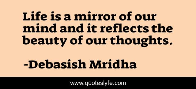 This page presents the quote "Life is a mirror of our mind and it reflects the beauty of our thoughts.". Author of this quote is Debasish Mridha. This quote is about life, love, knowledge, inspirational, intelligence, philosophy, wisdom, quotes, affection,.