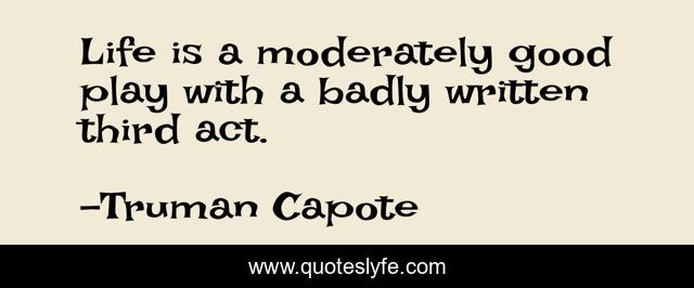 This page presents the quote "Life is a moderately good play with a badly written third act.". Author of this quote is Truman Capote. This quote is about life, metaphor,.