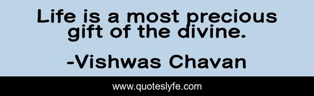 This page presents the quote "Life is a most precious gift of the divine.". Author of this quote is Vishwas Chavan. This quote is about vishwasutras, divine-grace, divine-gift, inspirational, life-philosophy, enthusiasm, divine,.