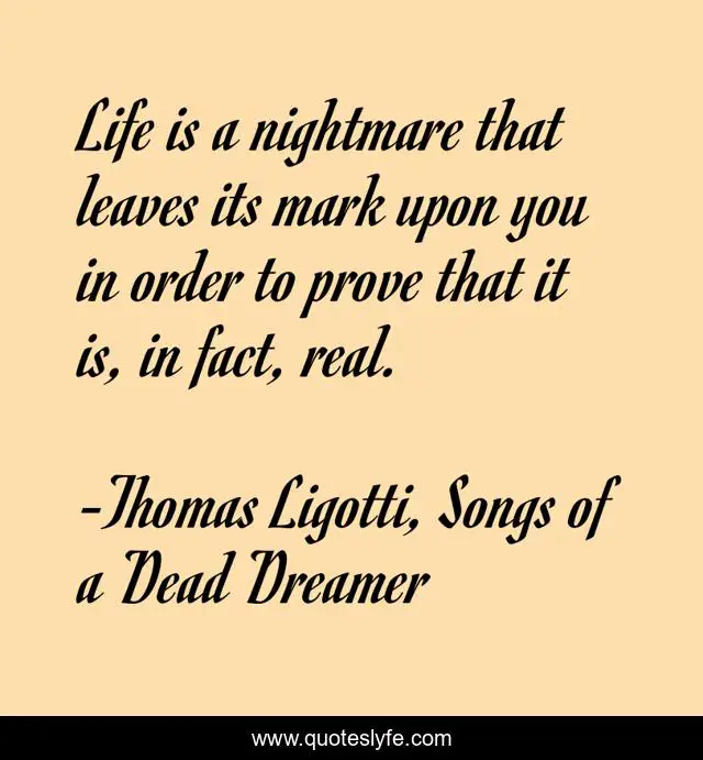 "Thomas Ligotti, Songs of a Dead Dreamer Quotes." Quoteslyfe.com, 2025. Sat. 06 Dec. 2025. <https://www.quoteslyfe.com/quote/Life-is-a-nightmare-that-leaves-its-156170>.