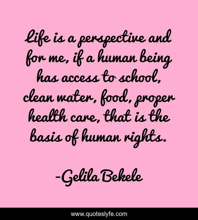 This page presents the quote "Life is a perspective and for me, if a human being has access to school, clean water, food, proper health care, that is the basis of human rights.". Author of this quote is Gelila Bekele. This quote is about water, life, health,.