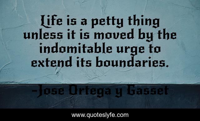 This page presents the quote "Life is a petty thing unless it is moved by the indomitable urge to extend its boundaries.". Author of this quote is Jose Ortega y Gasset. .