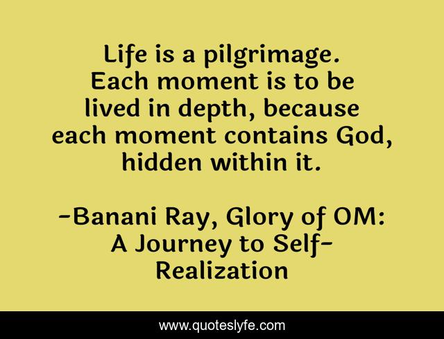 "Banani Ray, Glory of OM: A Journey to Self-Realization Quotes." Quoteslyfe.com, 2025. Fri. 05 Dec. 2025. <https://www.quoteslyfe.com/quote/Life-is-a-pilgrimage-Each-moment-is-105510>.