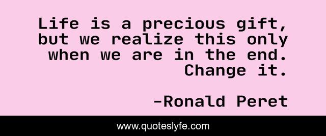 This page presents the quote "Life is a precious gift, but we realize this only when we are in the end. Change it.". Author of this quote is Ronald Peret. This quote is about life, positive-motivation,.