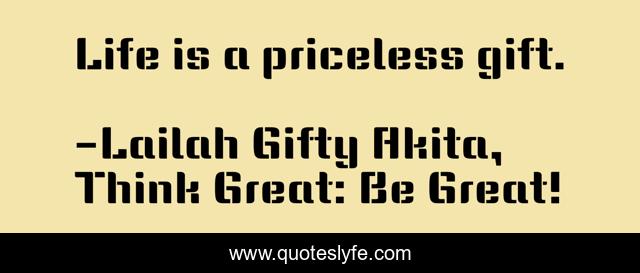 "Lailah Gifty Akita, Think Great: Be Great! Quotes." Quoteslyfe.com, 2025. Sat. 06 Dec. 2025. <https://www.quoteslyfe.com/quote/Life-is-a-priceless-gift-140405>.