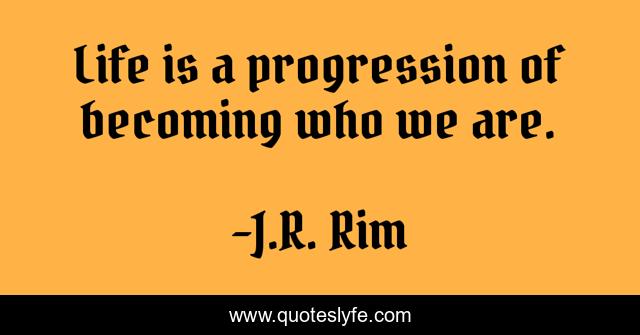 This page presents the quote "Life is a progression of becoming who we are.". Author of this quote is J.R. Rim. This quote is about development, be, life, who-are-you, progression, being, becoming, growth, growing-up,.