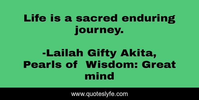 "Lailah Gifty Akita, Pearls of Wisdom: Great mind Quotes." Quoteslyfe.com, 2025. Mon. 08 Dec. 2025. <https://www.quoteslyfe.com/quote/Life-is-a-sacred-enduring-journey-169090>.