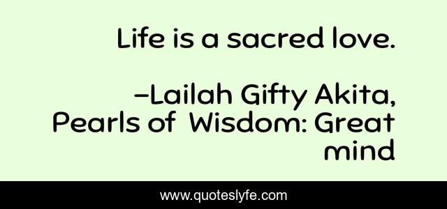 "Lailah Gifty Akita, Pearls of Wisdom: Great mind Quotes." Quoteslyfe.com, 2025. Sun. 07 Dec. 2025. <https://www.quoteslyfe.com/quote/Life-is-a-sacred-love-77269>.