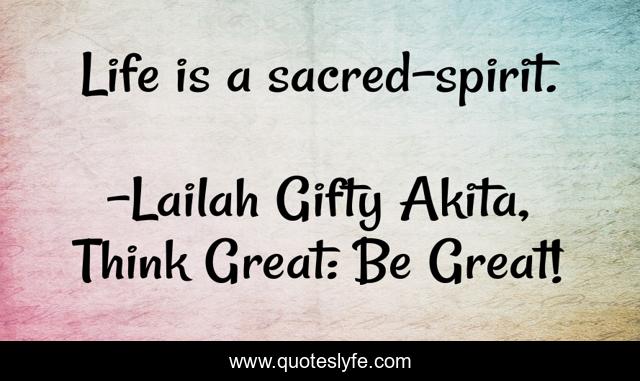 "Lailah Gifty Akita, Think Great: Be Great! Quotes." Quoteslyfe.com, 2025. Tue. 09 Dec. 2025. <https://www.quoteslyfe.com/quote/Life-is-a-sacred-spirit-94867>.