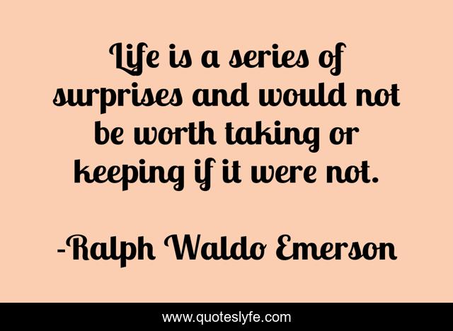 This page presents the quote "Life is a series of surprises and would not be worth taking or keeping if it were not.". Author of this quote is Ralph Waldo Emerson. This quote is about enthusiasm, life, inspirational,.