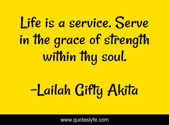 This page presents the quote "Life is a service. Serve in the grace of strength within thy soul.". Author of this quote is Lailah Gifty Akita. This quote is about life, christian, volunteering, service, government, community-service, positive, motivational, confidence,.