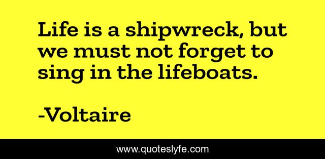 This page presents the quote "Life is a shipwreck, but we must not forget to sing in the lifeboats.". Author of this quote is Voltaire. This quote is about enthusiasm, inspirational,.