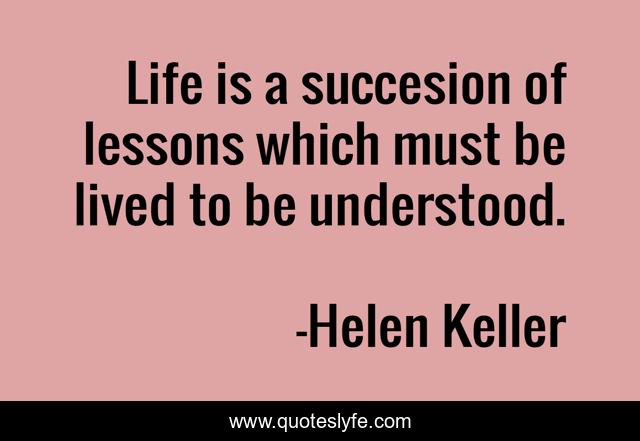This page presents the quote "Life is a succesion of lessons which must be lived to be understood.". Author of this quote is Helen Keller. This quote is about lessons, life,.