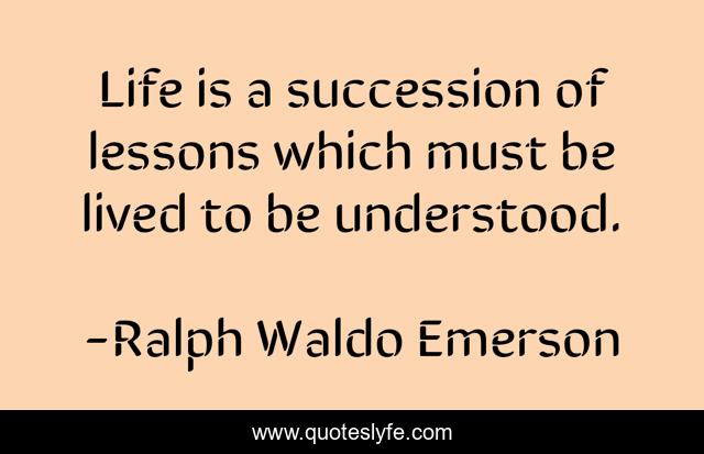 This page presents the quote "Life is a succession of lessons which must be lived to be understood.". Author of this quote is Ralph Waldo Emerson. This quote is about life, life-experience,.