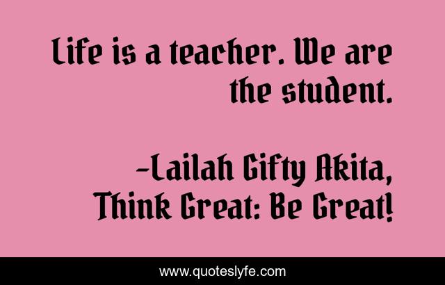 "Lailah Gifty Akita, Think Great: Be Great! Quotes." Quoteslyfe.com, 2025. Mon. 08 Dec. 2025. <https://www.quoteslyfe.com/quote/Life-is-a-teacher-We-are-the-84347>.