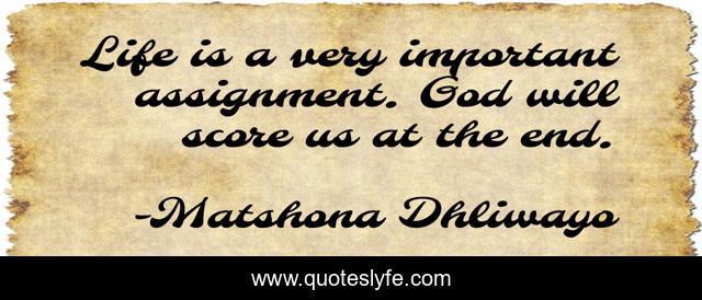 "Matshona Dhliwayo Quotes." Quoteslyfe.com, 2025. Sat. 06 Dec. 2025. <https://www.quoteslyfe.com/quote/Life-is-a-very-important-assignment-God-198867>.