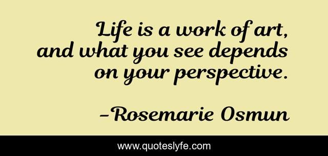 This page presents the quote "Life is a work of art, and what you see depends on your perspective.". Author of this quote is Rosemarie Osmun. This quote is about art, positivity, creativity, perspective, happiness,.