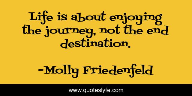 This page presents the quote "Life is about enjoying the journey, not the end destination.". Author of this quote is Molly Friedenfeld. This quote is about life, journeys, soul-searching, spiritual-path,.