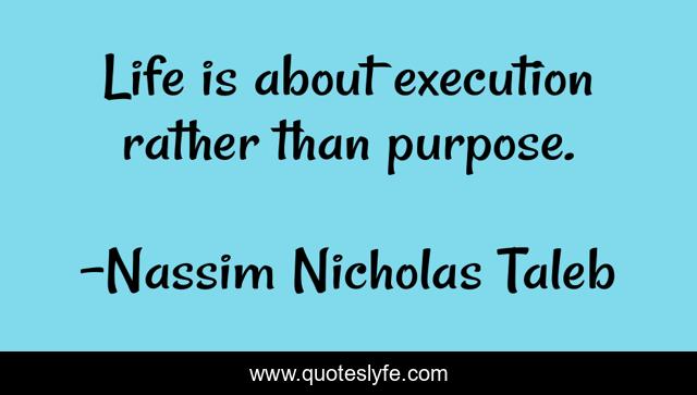 This page presents the quote "Life is about execution rather than purpose.". Author of this quote is Nassim Nicholas Taleb. .