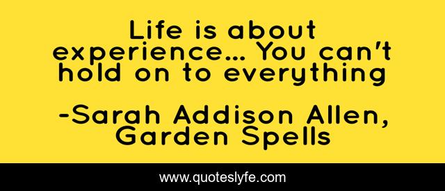 This page presents the quote "Life is about experience... You can't hold on to everything". Author of this quote is Sarah Addison Allen, Garden Spells. This quote is about life, life-experience,.