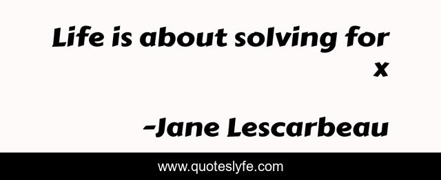 "Jane Lescarbeau Quotes." Quoteslyfe.com, 2025. Sat. 06 Dec. 2025. <https://www.quoteslyfe.com/quote/Life-is-about-solving-for-x-225898>.