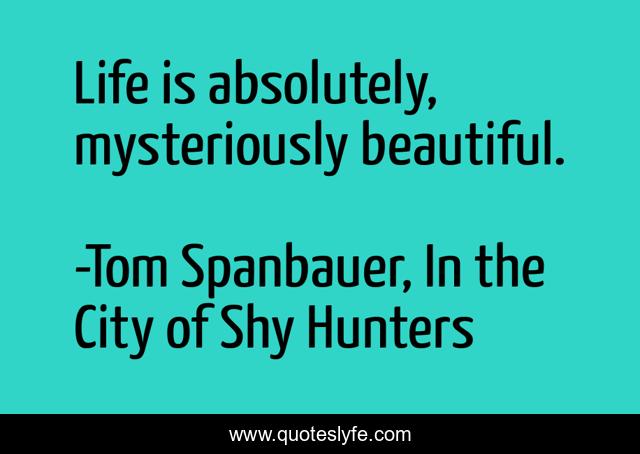 "Tom Spanbauer, In the City of Shy Hunters Quotes." Quoteslyfe.com, 2025. Fri. 05 Dec. 2025. <https://www.quoteslyfe.com/quote/Life-is-absolutely-mysteriously-beautiful-224615>.