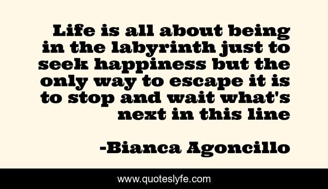 This page presents the quote "Life is all about being in the labyrinth just to seek happiness but the only way to escape it is to stop and wait what's next in this line". Author of this quote is Bianca Agoncillo. .
