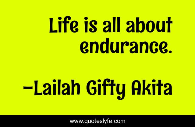 This page presents the quote "Life is all about endurance.". Author of this quote is Lailah Gifty Akita. This quote is about life, life-experience, life-and-living-life-and-love, life-lesson, endurance, life-and-learning, endure, life-lessons, life-changing,.