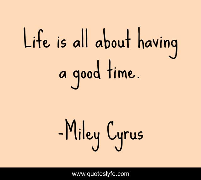 "Miley Cyrus Quotes." Quoteslyfe.com, 2025. Fri. 05 Dec. 2025. <https://www.quoteslyfe.com/quote/Life-is-all-about-having-a-good-301745>.