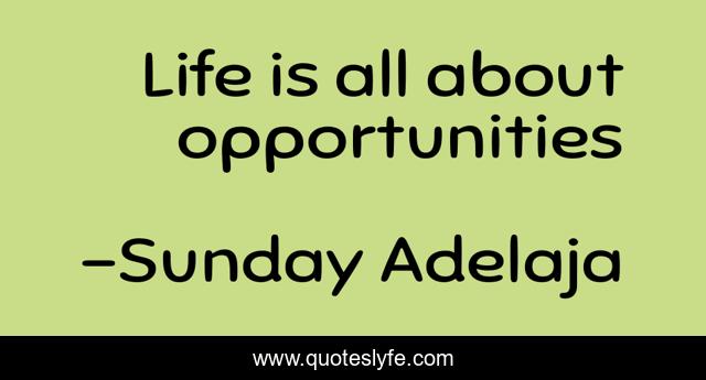 "Sunday Adelaja Quotes." Quoteslyfe.com, 2025. Sat. 06 Dec. 2025. <https://www.quoteslyfe.com/quote/Life-is-all-about-opportunities-46361>.