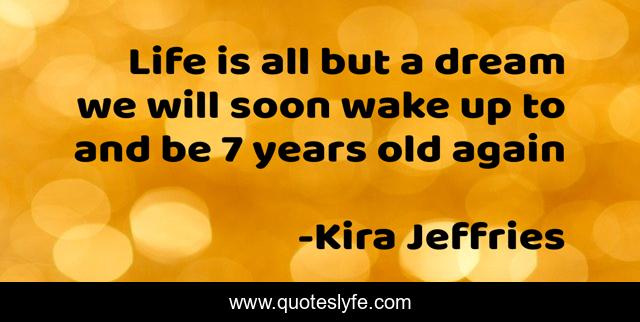 This page presents the quote "Life is all but a dream we will soon wake up to and be 7 years old again". Author of this quote is Kira Jeffries. This quote is about age, life,.