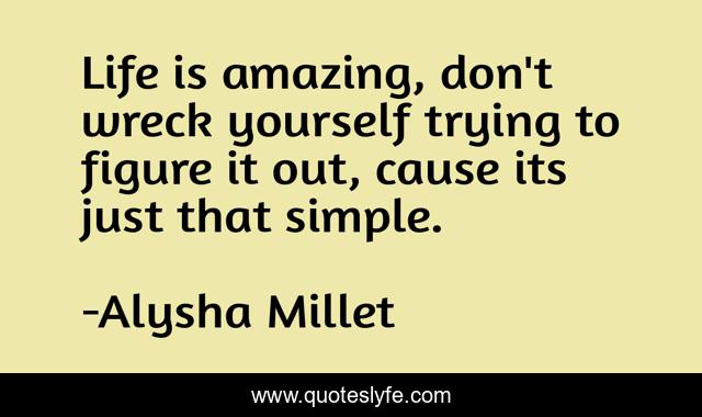 This page presents the quote "Life is amazing, don't wreck yourself trying to figure it out, cause its just that simple.". Author of this quote is Alysha Millet. .