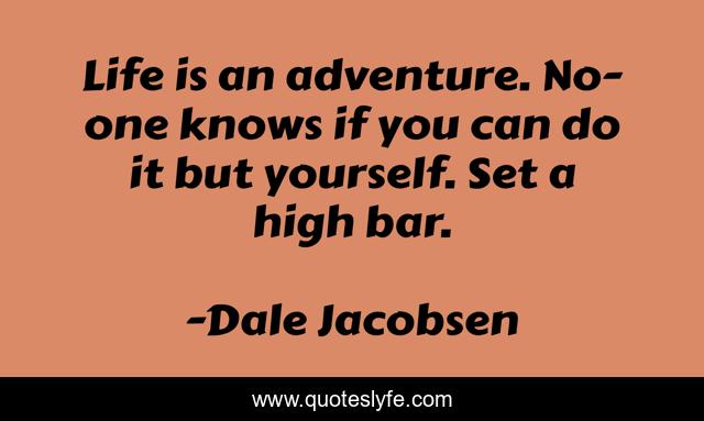 This page presents the quote "Life is an adventure. No-one knows if you can do it but yourself. Set a high bar.". Author of this quote is Dale Jacobsen. .
