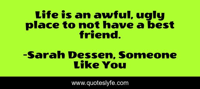 This page presents the quote "Life is an awful, ugly place to not have a best friend.". Author of this quote is Sarah Dessen, Someone Like You. .