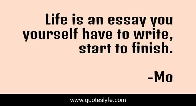 This page presents the quote "Life is an essay you yourself have to write, start to finish.". Author of this quote is Mo. .