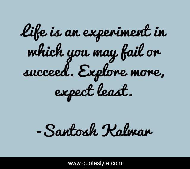 This page presents the quote "Life is an experiment in which you may fail or succeed. Explore more, expect least.". Author of this quote is Santosh Kalwar. This quote is about life, inspirational, succeed, explore, experiment, expect, life-lessons, fail, enthusiasm,.