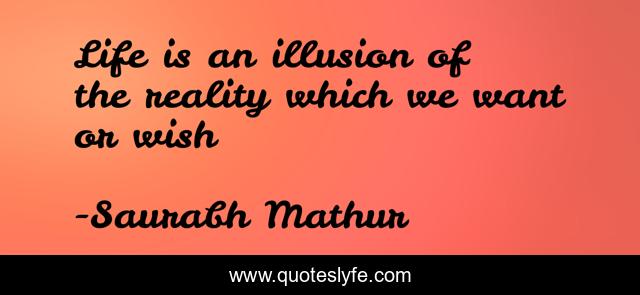 This page presents the quote "Life is an illusion of the reality which we want or wish". Author of this quote is Saurabh Mathur. This quote is about life-philosophy, reality-of-life,.
