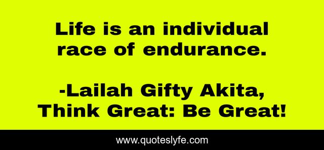 "Lailah Gifty Akita, Think Great: Be Great! Quotes." Quoteslyfe.com, 2025. Mon. 08 Dec. 2025. <https://www.quoteslyfe.com/quote/Life-is-an-individual-race-of-endurance-78367>.