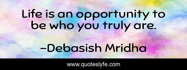 This page presents the quote "Life is an opportunity to be who you truly are.". Author of this quote is Debasish Mridha. This quote is about inspirational, philosophy, debasish-mridha, quotes, debasish-mridha-md, be-who-you-truly-are, enthusiasm, opportunity,.