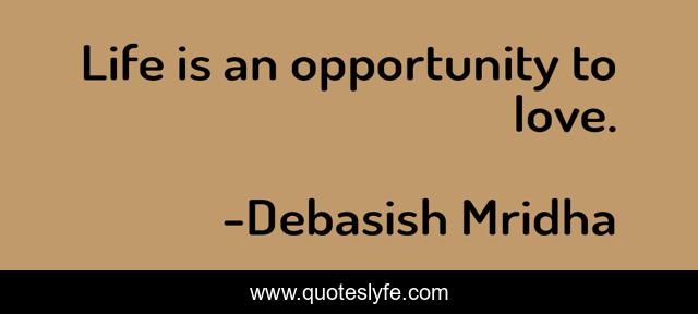 This page presents the quote "Life is an opportunity to love.". Author of this quote is Debasish Mridha. This quote is about life, debasish, love, mridha, philosophy, debasish-mridha, opportunity-to-love, affection,.