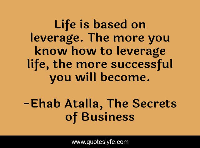 This page presents the quote "Life is based on leverage. The more you know how to leverage life, the more successful you will become.". Author of this quote is Ehab Atalla, The Secrets of Business. This quote is about skills, business, entrepreneurship,.