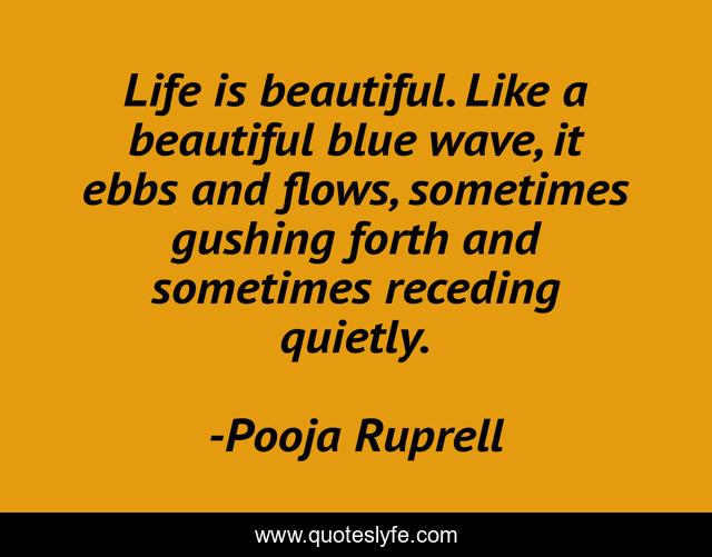 This page presents the quote "Life is beautiful. Like a beautiful blue wave, it ebbs and flows, sometimes gushing forth and sometimes receding quietly.". Author of this quote is Pooja Ruprell. This quote is about perseverance, passion, prayer,.