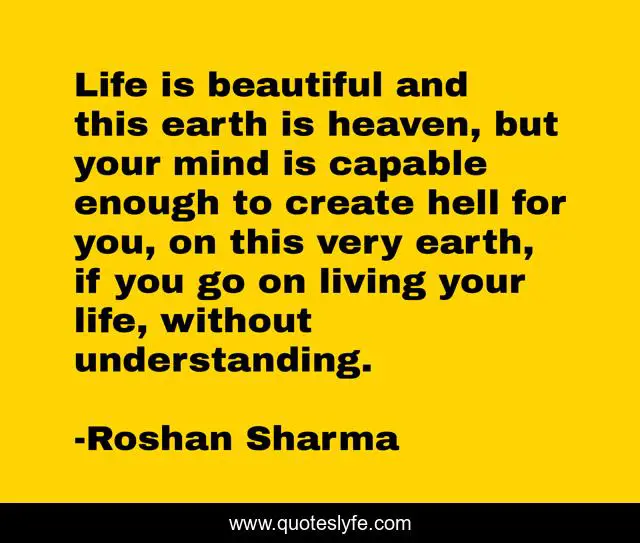 This page presents the quote "Life is beautiful and this earth is heaven, but your mind is capable enough to create hell for you, on this very earth, if you go on living your life, without understanding.". Author of this quote is Roshan Sharma. This quote is about live, insight, painful, truth, learn,.