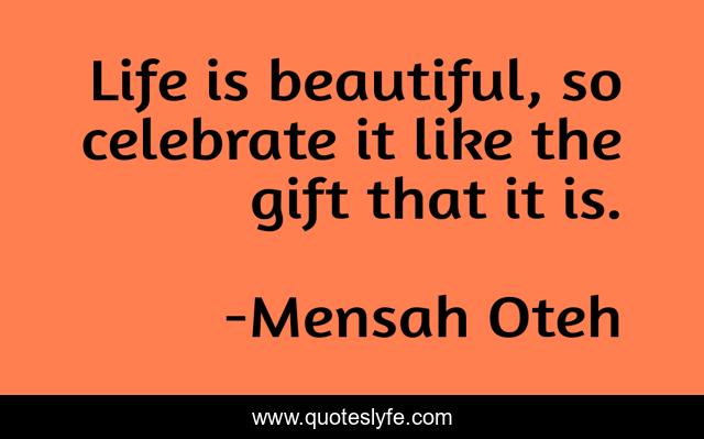 "Mensah Oteh Quotes." Quoteslyfe.com, 2025. Mon. 08 Dec. 2025. <https://www.quoteslyfe.com/quote/Life-is-beautiful-so-celebrate-it-like-49195>.