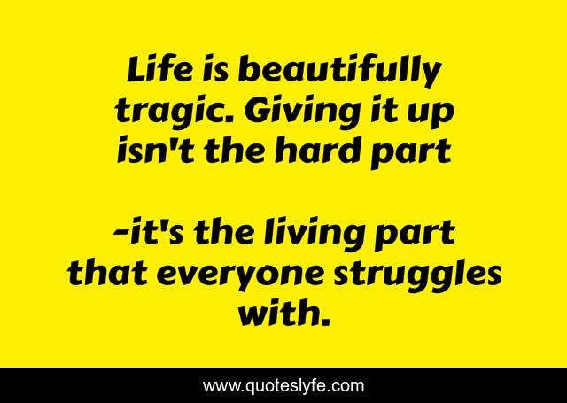 "it's the living part that everyone struggles with. Quotes." Quoteslyfe.com, 2025. Fri. 05 Dec. 2025. <https://www.quoteslyfe.com/quote/Life-is-beautifully-tragic-Giving-it-up-241554>.