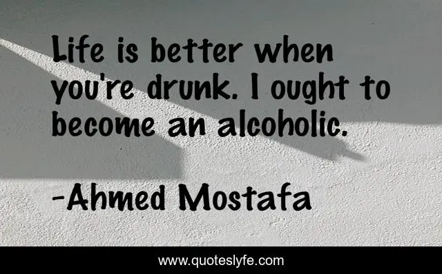 This page presents the quote "Life is better when you're drunk. I ought to become an alcoholic.". Author of this quote is Ahmed Mostafa. This quote is about humor, drunk, better, drunkenness, drinking, alcoholism,.