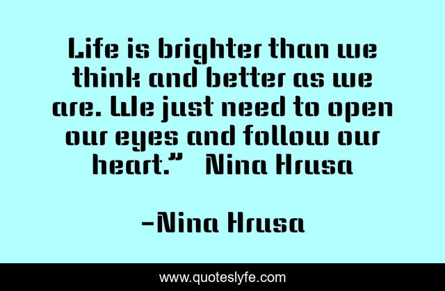 Life is brighter than we think and better as we are. We just need to open our eyes and follow our heart.” ― Nina Hrusa